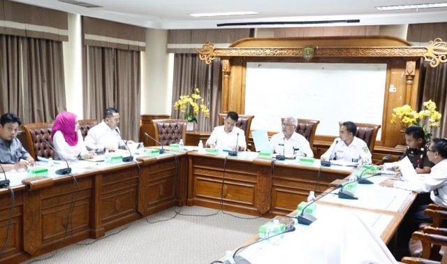 RUMUSKAN BONUS: Seskab Irawansyah memimpin jalannya rapat tim perumus bonus porprov. (Foto: Irfan Humas)