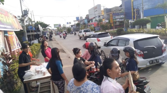 Saat berbagi takjil gratis di Jalan Yos Sudarso II, Sabtu (18/5/2019). (Foto: Ist).
