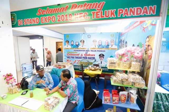 SANGATTA-Stan Kecamatan Teluk Pandan juga tak mau kalah dengan stan kecamatan lain. Salah satunya memamerkan puluhan jenis hasil produk unggulan UKM yang dijual dengan harga terjangkau dalam momen memeriahkan Puncak Peringatan Hari Gerak Kesatuan Pemberdayaan dan Kesejahteraan Keluarga (HKG PKK) ke-47, Pencanangan Bulan Bakti Gotong Royong Masyarakat (BBRGM) ke-16, dan gelar Teknologi Tepat Guna ke-16 yang dipusatkan di area Indoor Gedung Graha Expo, Bukit Pelangi, Kamis (27/6/2019) lalu.