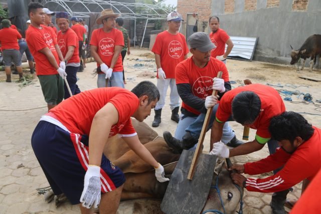 Saat panitia menyembelih hewan kurban.(foto: Wahyu Humas)