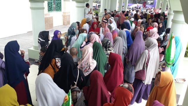 Di halaman masjid nampak ratusan masyarakat sudah sejak pagi menanti anggota keluarganya. Mungkin karena rasa rindu sudah menggebu tak bersua lebih sebulan lamanya, ketika melihat unit bus VIP memasuki area parkir masjid, sorak sorai dan ucap syukur langsung diteriakan oleh para keluarga yang sudah semakin tak sabar berjumpa jamaah.