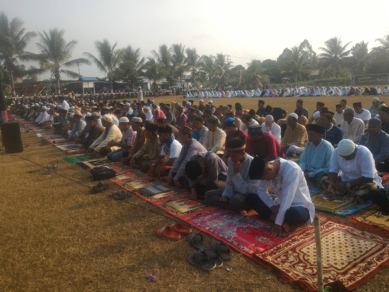 SANGATTA-Ratusan warga di Desa Muara Bengkal Ilir berinisiatif menggelar salat istisqa atau salat minta hujan disebabkan kebakaran hutan dan lahan (Karhutla) serta kemarau panjang yang belum berakhir. Salat Istisqa di Lapangan Sepak Bola Muara Bengkal Ilir itu turut diikuti anak-anak SMP maupun SMA yang mengenakan seragam pramuka, Sabtu (21/9/2019).