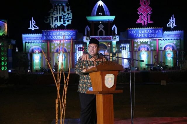 Bupati Kutim H Ismunandar saat membuka Perhelatan Musabaqah Tilawatil Quran (MTQ) Tingkat Kabupaten Kutai Timur Tahun 2018 di Kecamatan Karangan. (Foto: Jani Humas)