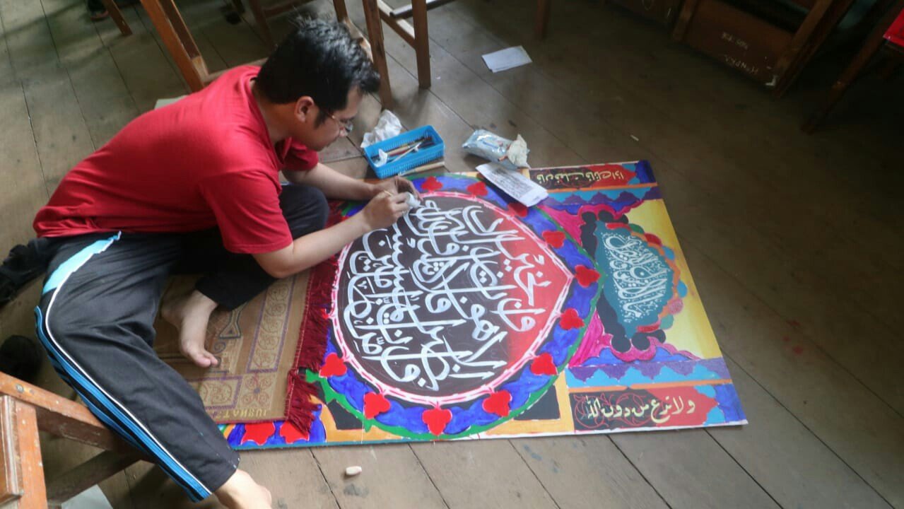 Salah satu peserta MTQ cabang Khatil atau kaligrafi menyelsaikan hasil karyanya. (Foto Jani Humas)