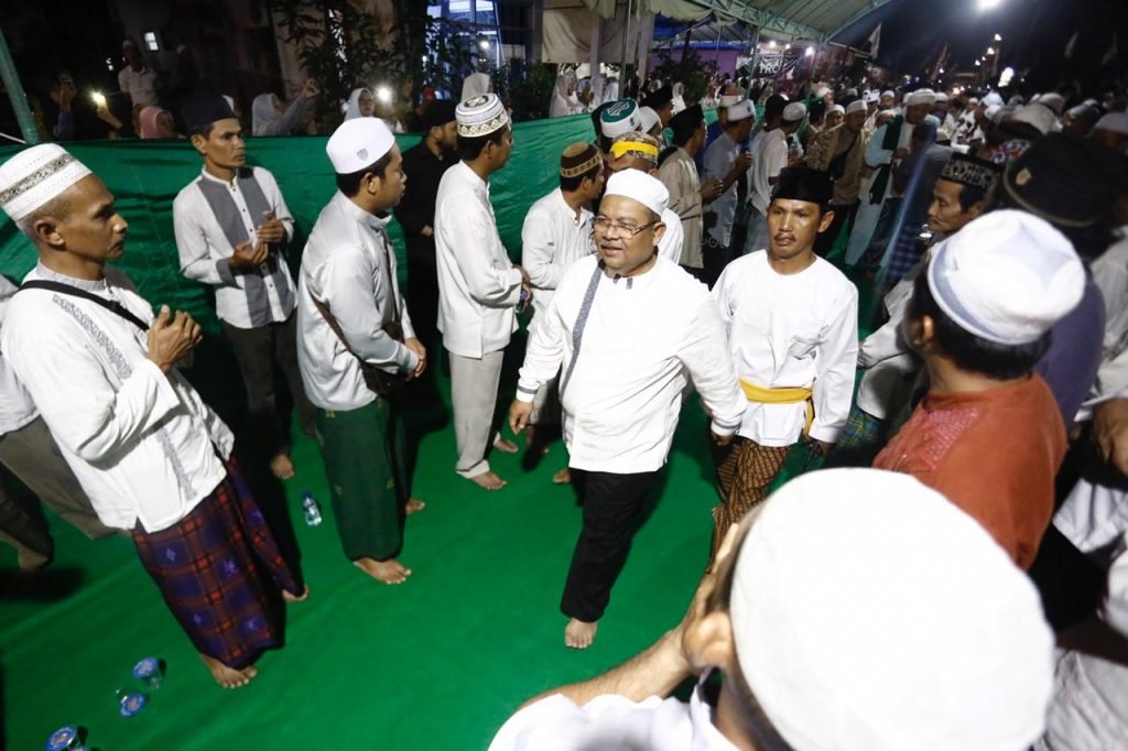 SANGATTA-Bupati Kutai Timur (Kutim) Ismunandar berharap masyarakat dapat meneladani sifat Nabi Muhammad SAW saat menghadiri langsung peringatan Maulid Nabi Muhammad SAW 1441 H di kawasan Jalan Margo Santoso, Dusun Pinang Raya, Desa Sangatta Utara, Rabu (15/1/2020) malam.