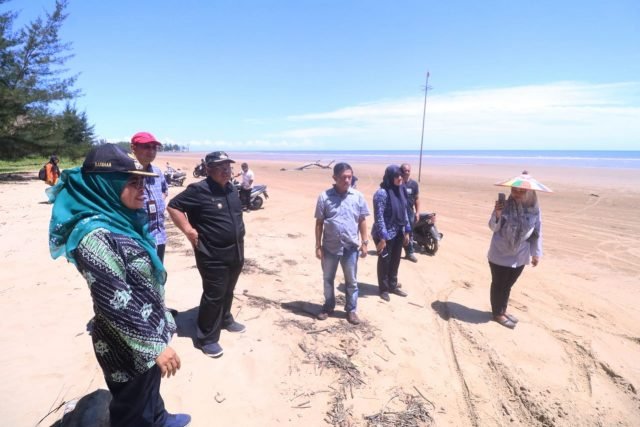 Bupati Ismunandar meninjau obyek wisata pantai Desa Teluk Singkama. (Foto Jani Pro Kutim)