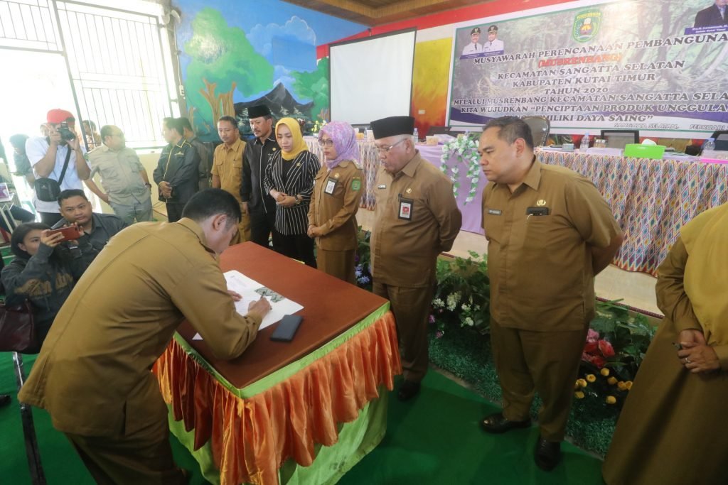 SANGATTA – Pelaksanaan Musyawarah Rencana Pembangunan (Musrenbang) Tingkat Kecamatan di Zona Kota, berlanjut di Kecamatan Sangatta Selatan, Senin siang (10/2/2020) di Balai Pertemuan Umum (BPU) Desa Sangkima.