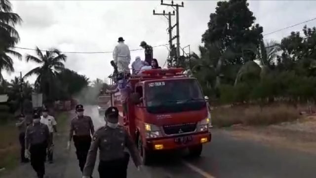 Momen penyemprotan desinfektan di Muara Wahau.(Ist)