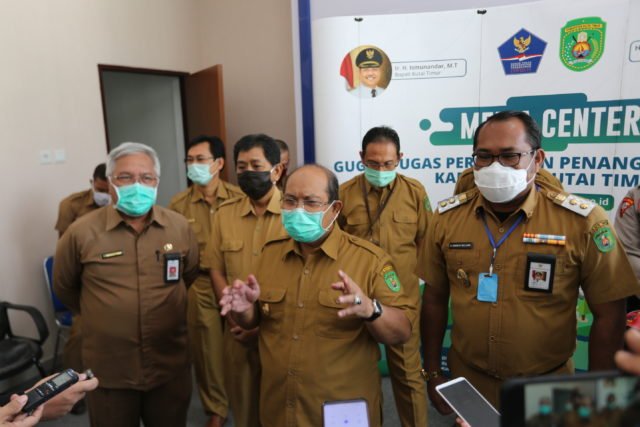SANGATTA – Bupati Ir H Ismunandar didampingi Wabup H Kasmidi Bulang dan Sekretaris Kabupaten H Irawansyah terus memantau perkembangan penularan COVID-19 di wilayah Kabupaten Kutai Timur (Kutim). Data terakhir, Senin (17/4/2020), pasien terkonfirmasi positif sebanyak 13 orang, angka Pasien Dengan Pengawasan (PDP) mencapai 31 orang, dan Orang Dalam Pemantauan (ODP) sebanyak 435 orang.