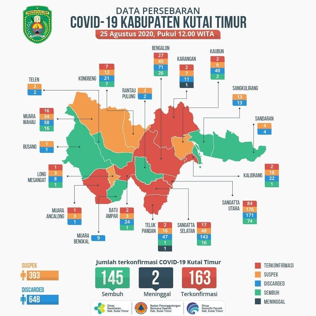 SANGATTA – Dinas Kesehatan (Dinkes) Kutai Timur (Kutim) kembali merilis data terkini persebaran COVID-19 di Kutim pada Selasa (25/8/2020). Ada penambahan 1 pasien positif COVID-19 yaitu KTM-163.