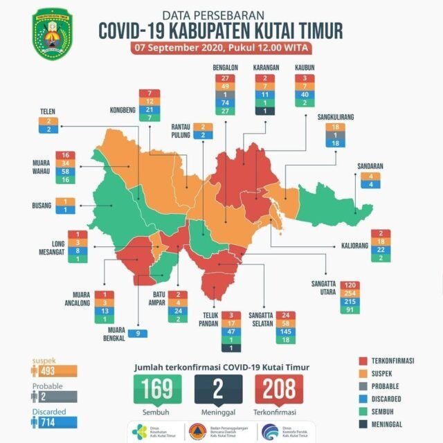 Menilik data yang dirilis Dinas Kesehatan Kutai Timur (Dinkes Kutim) persebaran pandemi COVID-19 di Kabupaten Kutim, Senin (7/9/2020), penambahan dua kasus terkonfirmasi positif COVID-19 adalah KTM 207 dan KTM 208.
