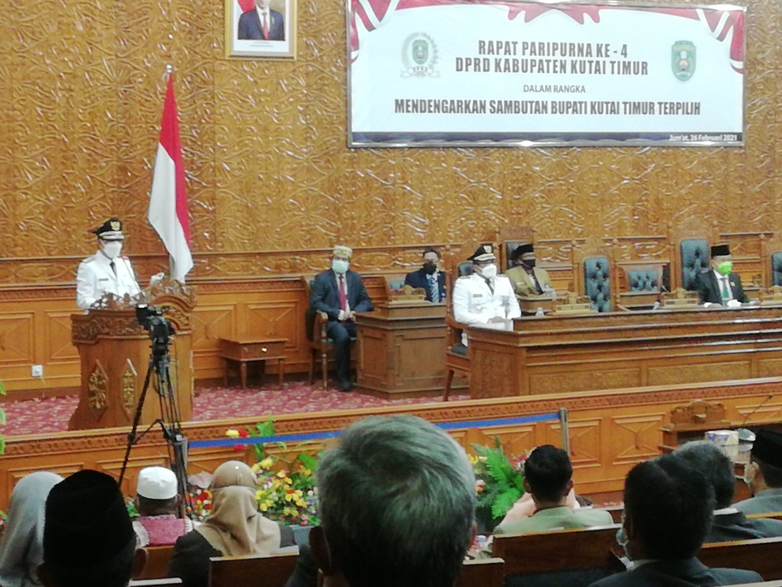 Saat Bupati Kutim Ardiansyah Sulaiman menyampaikan pidato di ruang sidang utama kantor DPRD Kutim. (Wahyu Pro Kutim)
