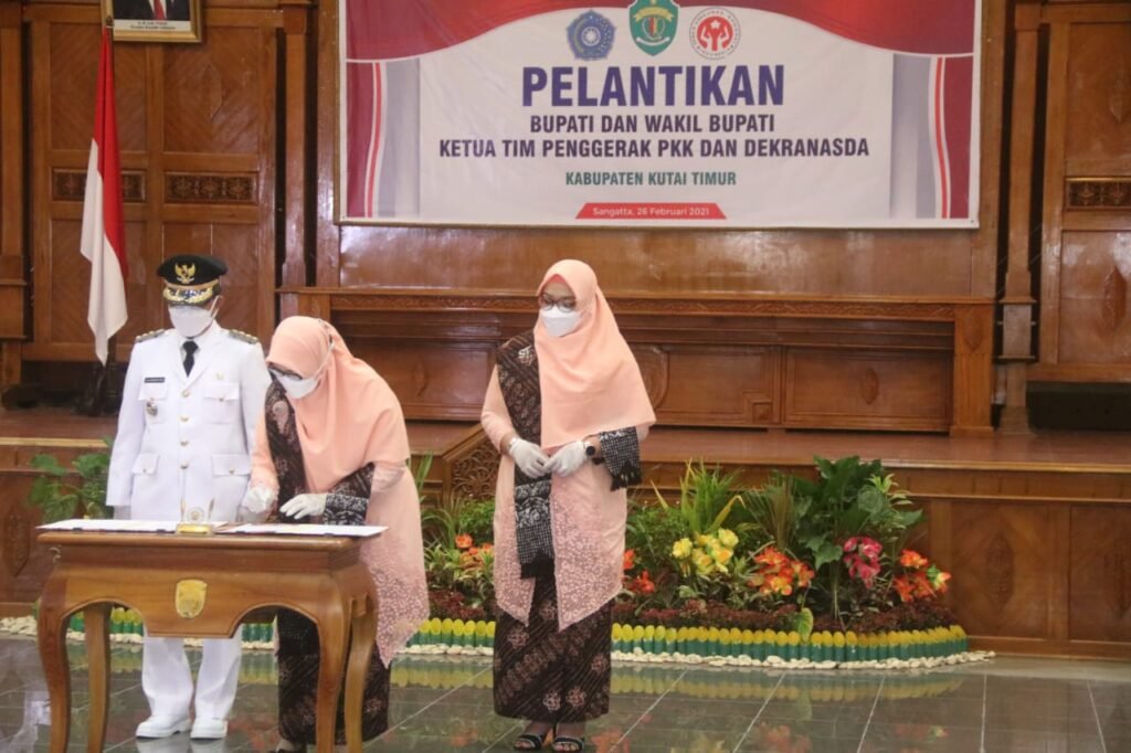 Isteri orang nomor satu di Pemkab Kutim tersebut dilantik usai pelantikan Bupati dan Wakil Bupati Kutim. Putusan pelantikan dibacakan oleh Ketua TP PKK dan Ketua Dekranasda Kaltim, Ny Hj Norbaiti Isran.