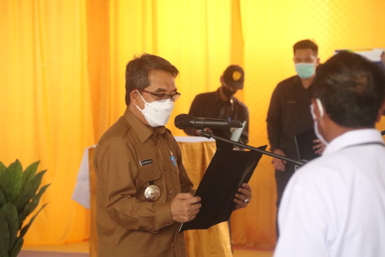 KAUBUN – Bupati Kutai Timur H Ardiansyah mengukuhkan 4 Pj Kades dari Desa Bumi Rapak, Bukit Permata, Kandungan Jaya dan Pengadan Baru. Sekaligus pula melantik tiga BPD dari desa Bumi Etam, Bumi Rapak dan Bumi Jaya kecamatan Kaubun. Acara itu, berlangsung di di areal lapangan Bumi Etam Futsal, kawasan kantor camat Kaubun, Selasa (23/3/2021) sore.