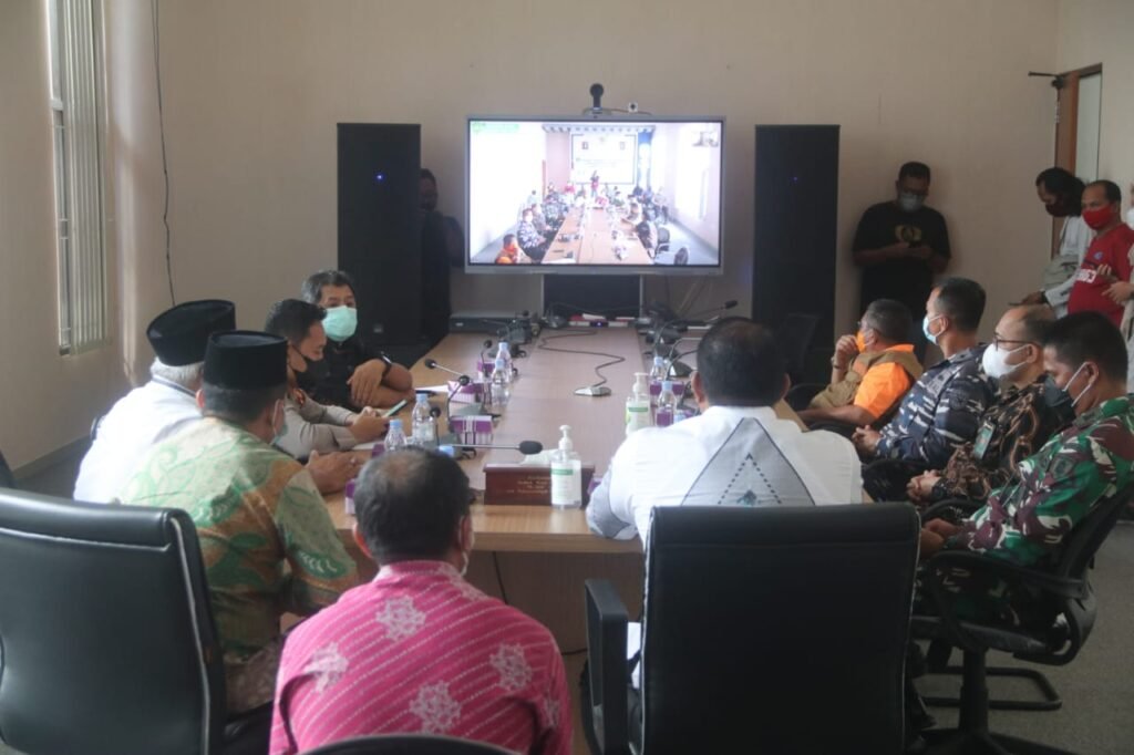 Rapat evaluasi pemberian vaksin COVID-19 yang berjalan secara virtual di Kantor Diskominfo Kutim ini melibatkan Camat se Kutim. Dipimpin Wabup Kasmidi Bulang mewakili Bupati. Rapat juga diikuti Ketua DPRD Kutim H Joni, Seskab Irawansyah, Dandim 0909 Letkol CZi Pabate, Kadinkes dr Bahrani, Kepala BPBD Kutim Syafruddin dan undangan lainnya.