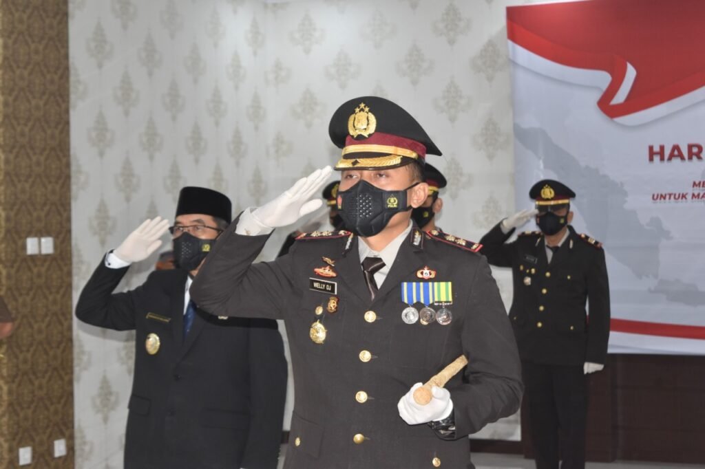Bupati Kutim Ardiansyah Sulaiman mengikuti jalannya upacara peringatan HUT ke-75 Bhayangkara di Mako Polres Kutim. Foto: Humas Polres Kutim
