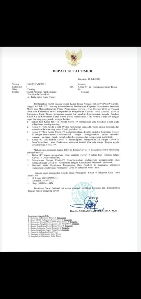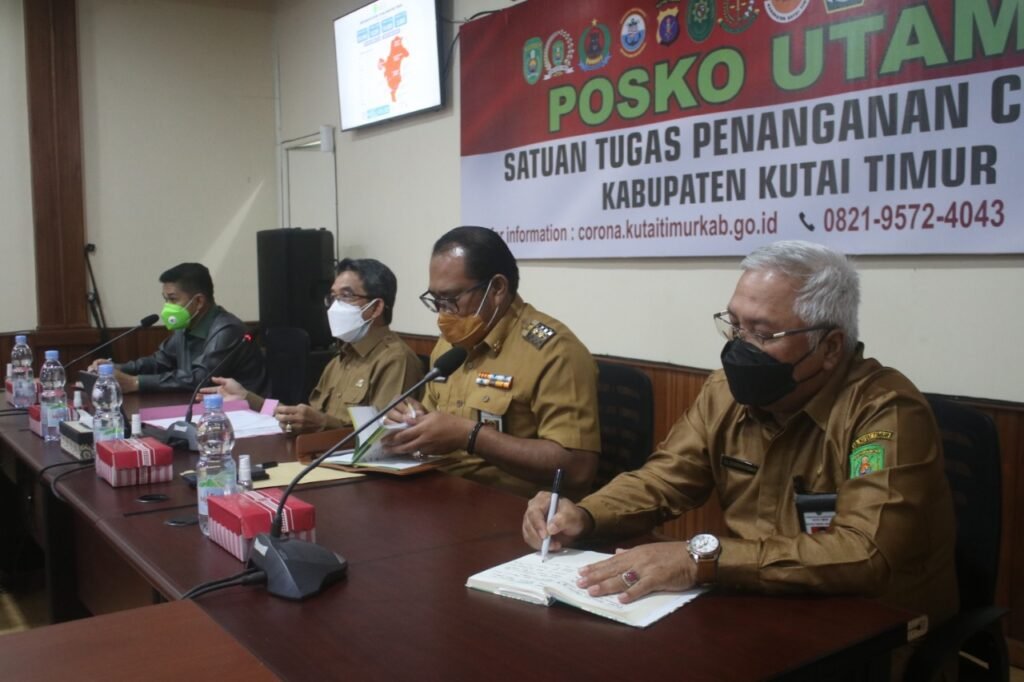 SANGATTA – Tim Satuan Tugas (Satgas) COVID-19 Kutim kembali mengevaluasi Pelaksanaan Pembatasan Kegiatan Masyarakat (PPKM) Mikro. Selain untuk mengantisipasi lonjakan kasus penularan COVID-19, juga untuk memastikan situasi sejauh ini masih terkendali. Rapat evaluasi berlangsung di Kantor Badan Penanggulangan Bencana Daerah (BPBD), Senin (12/7/2021) siang.