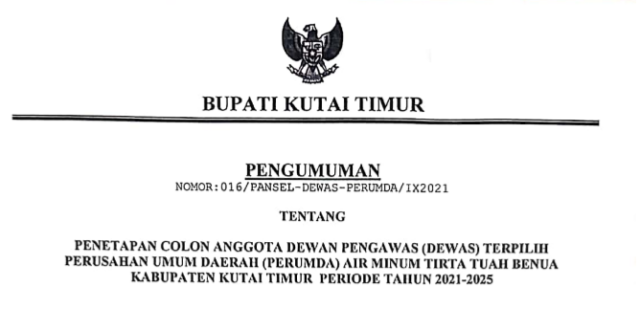 Beranda Kutai Timur Penetapan Calon Anggota Dewas Terpilih PDAM Kab. Kutai Timur Priode 2021-2025 Kutai Timur Penetapan Calon Anggota Dewas Terpilih PDAM Kab. Kutai Timur Priode 2021-2025 Penulis - 26 September 2021 220 views 0 FacebookTwitterPinterestWhatsApp Penetapan Calon Anggota Dewas Terpilih PDAM Kab. Kutai Timur Priode 2021-2025Download