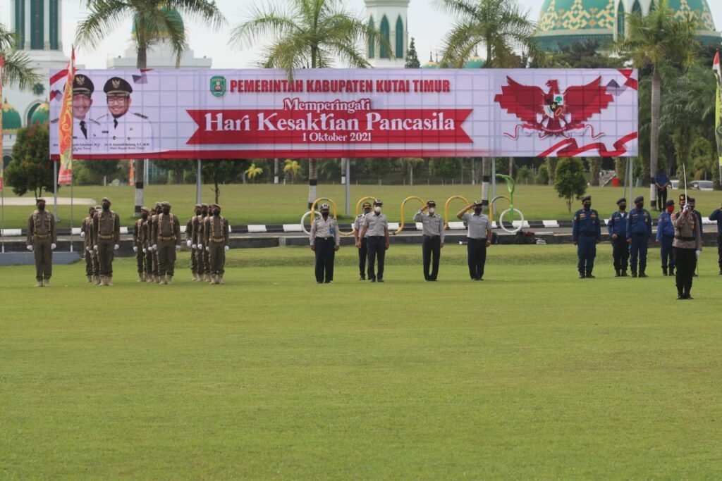 SANGATTA – Hari Kesaktian Pancasila di Kutim tahun ini di Kabupaten Kutai Timur (Kutim) diperingati dengan melaksanakan upacara di Halaman Kantor Bupati Kutim, Jumat (1/10/2021).