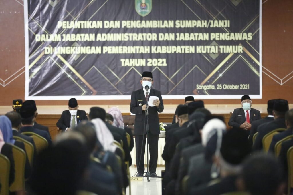 Sesuai dengan surat keputusan Bupati Kutim Nomor 821.2/592/BKPP-MUT/X/2021 tentang pelantikan dan pengambilan sumpah/janji dalam jabatan administrator dan pengawas di lingkungan Pemkab Kutim. Ada sekitar 230 ASN yang dilantik dan diambil sumpahnya oleh Bupati Kutim Ardiansyah Sulaiman. Total ada sebanyak 88 pejabat eselon tiga dan 142 eselon empat dilantik hari ini.