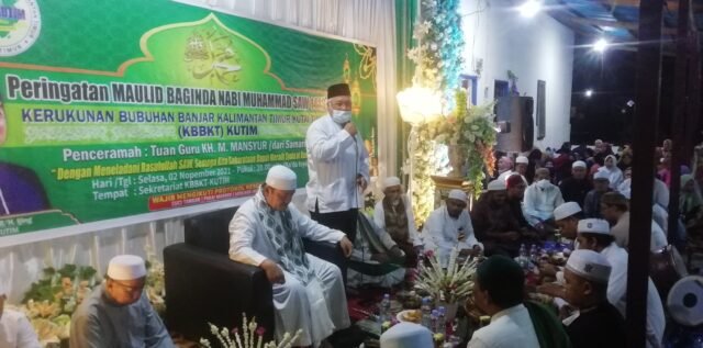 SANGATTA – Selasa (2/11/2021), Sekretaris Kabupaten (Seskab) Kutai Timur (Kutim) Irawansyah, menhadiri peringatan Maulid Nabi Muhammad SAW 1443 H, yang di gelar oleh Kerukunan Bubuhan Banjar Kalimantan Timur-Kutai Timur (KBBKT-Kutim), malam tadi di Sekretariat KBBKT-Kutim Jalan Ilham Maulana, Kecamatan Sangatta Utara.