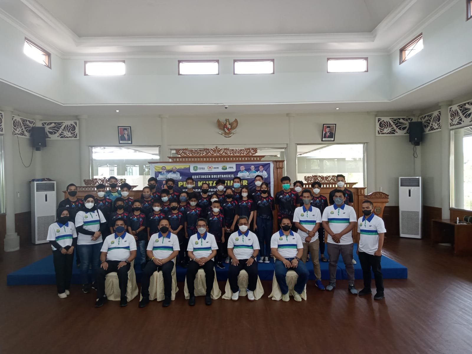 SANGATTA – Pengkab PBSI Kutim menargetkan prestasi di Kejurprov Bulu Tangkis 2021. Pebulu tangkis terbaik dikirim, untuk berlaga di even yang akan dipusatkan di area Lapangan Bulu Tangkis GOR Bangun Setia Graha Kilometer 6 Kota Bontang, Senin (8/11/2021) besok hingga Jumat (12/11/2021) mendatang. Sebelum berangkat ke Kota Taman, kontingen PBSI Kutim dilepas secara simbolis oleh Bupati Kutim Ardiansyah Sulaiman didampingi Ketua Pengkab PBSI Kutim Suparjan, di Pendopo Rujab Bupati Kutim, Minggu (7/11/2021).
