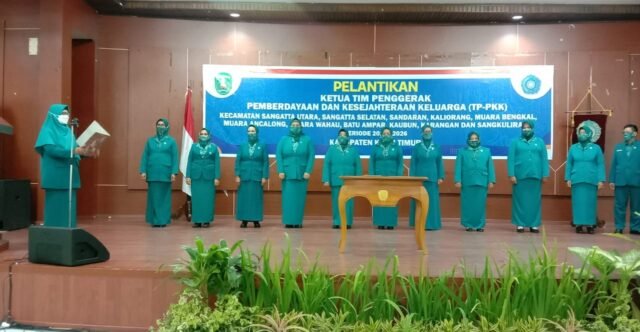 Pelantikan belasan Ketua TP PKK tersebut, berdasarkan Surat Keputusan (SK) Ketua TP PKK Kabupaten Kutai Timur (Kutim) nomor 204/KEP/PKK.KAB/XII/2021 tentang pelantikan Ketua TP PKK Sangatta Utara, Sangatta Selatan, Sandaran, Kaliorang, Muara Bengkal, Muara Ancalong, Muara Wahau, Batu Ampar, Kaubun, Karangan dan Sangkulirang.