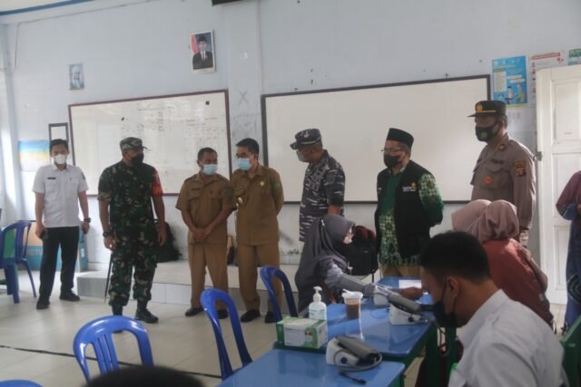 Bupati Ardiansyah didampingi Dandim 0909/KTM serta Danlanal Sangatta saat meninjau Vaksinasi di SMK 1 Muhammadiyah. (Wahyu Yuli Artanto Pro Kutim)