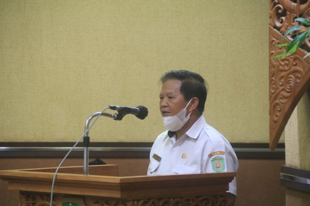 Rizali Hadi saat memberikan sambutan Sosialisasi Jabatan Fungsional dilingkup Pemkab Kutim (Wahyu Yuli Pro Kutim).