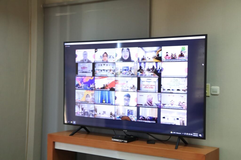 Suasana video conference Membangun Komitmen Penerapan Manajemen ASN dengan sistem merit di kantor BKPP Kutim, Senin (31/1/2022).(Vian Pro Kutim)