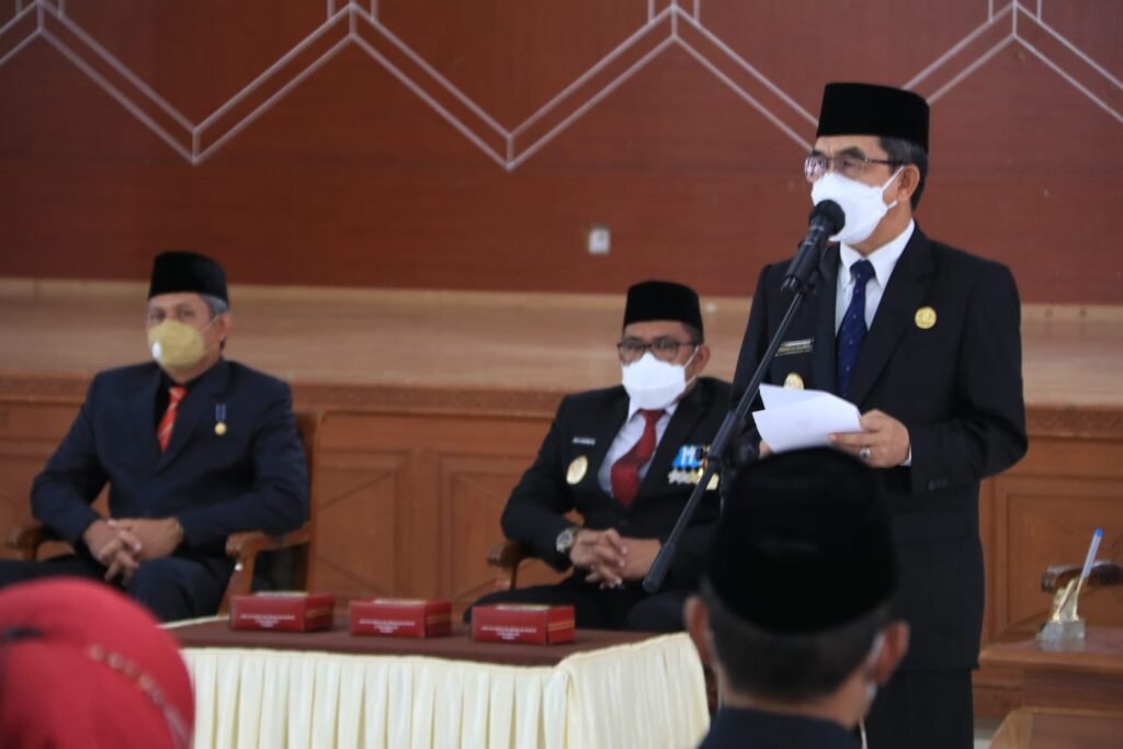 Bupati Ardiansyah saat melantik Kepala Sekolah dan Pengawas Sekolah diruang Akasia Gedung Serba Guna Bukit Pelangi foto Wahyu Yuli Artanto Pro Kutim.