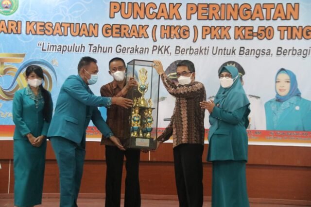 Momen penyerahan penghargaan kepada juara umum lomba rangkaian HKG-PKK tingkat kabupaten kepada TP PKK Ranpul. (Foto Riki Halmas)