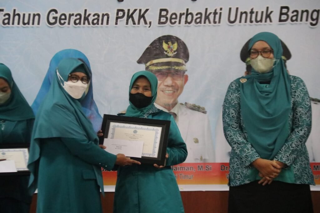 SANGATTA- Prestasi TP PKK Kecamatan Rantau Pulung (Ranpul) yang sukses menjadi juara umum lomba rangkaian HKG PKK ke-50 tingkat Kabupaten Kutim, Jumat (13/5/2022) kemarin mendapat apresiasi dari Ketua TP PKK Kutim Ny Hj Siti Robiah. Istri Bupati Kutim H Ardiansyah Sulaiman tersebut mengaku senang dengan pencapaian TP PKK Ranpul.