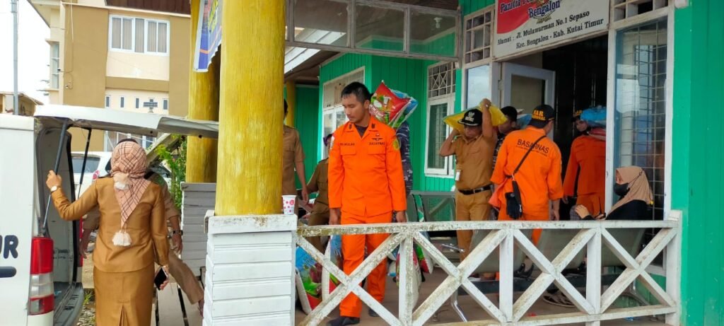 Camat Bengalon membantu masyarakat terdampak banjir. (Ist)
