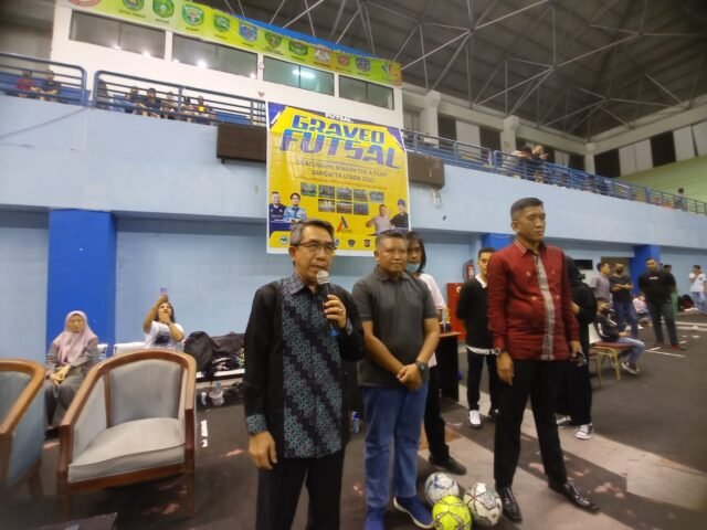 SANGATTA – Bupati Kutai Timur (Kutim) Ardiansyah Sulaiman mengapresiasi dan mendukung kegiatan rutin dalam Turnamen Graveo Futsal gelaran The A Team. Ajang seperti ini, kata Ardiansyah, merupakan salah satu langkah yang positif untuk mendorong generasi muda berkreasi. Sehingga mempunyai kreativitas dalam mengembangkan minat dan bakat dalam olahraga futsal. Sekaligus tentunya terhindar dari kegiatan hal-hal negatif.