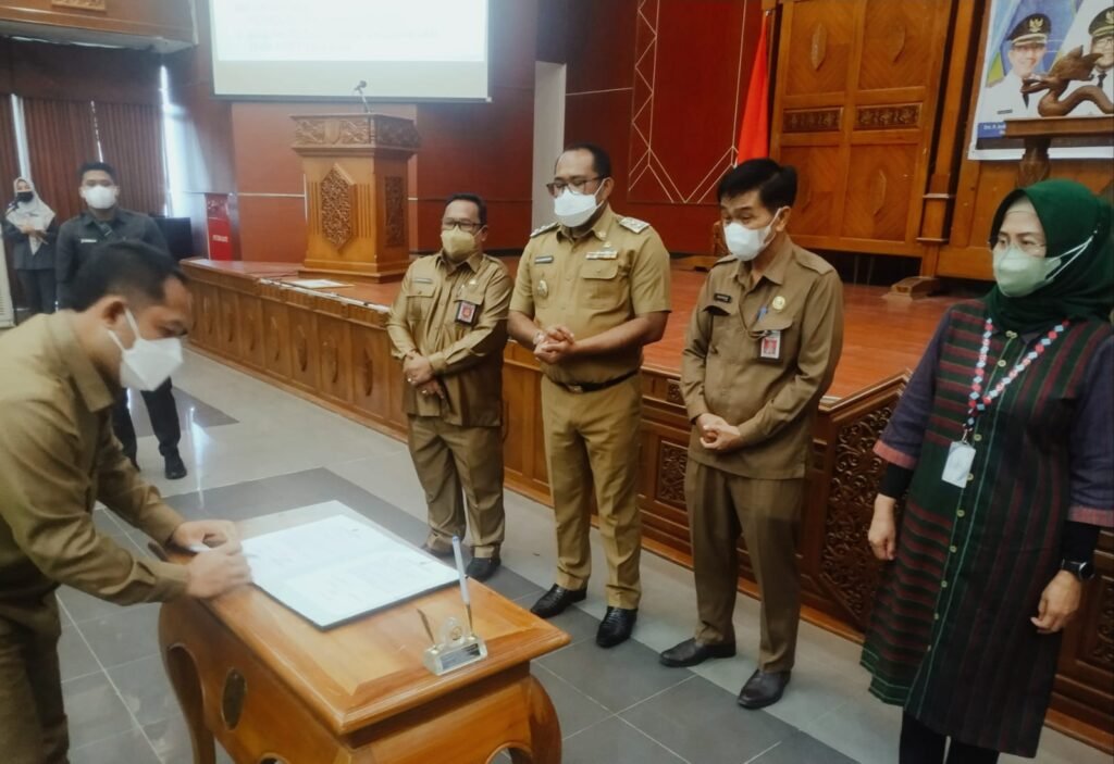 Wakil Bupati Kasmidi Bulang menyaksikan penandatanganan pakta integritas penyelenggaraan kearsipan yang dilakukan tiap-tiap Organisasi Perangkat Daerah (OPD) hingga Kecamatan se-Kutim. Kegiatan ini dihadiri langsung Deputi Bidang Pembinaan Kearsipan ANRI (Arsip Nasional Republik Indonesia) Desi Pratiwi, Kepala Dinas Perpustakaan dan Kearsipan Suriansyah, serta H. Kadir sebagai perwakilan unsur masyarakat H. Kadir.