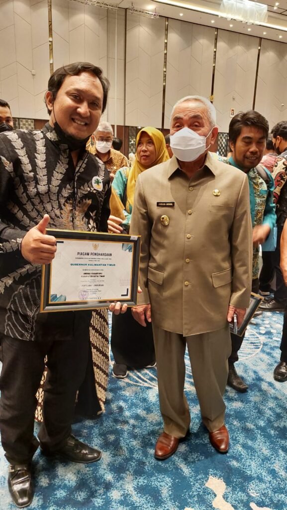 Momen Andika Yohantoro saat menerima piagam Kalpataru dari Pemprov Kaltim. Foto: Ist