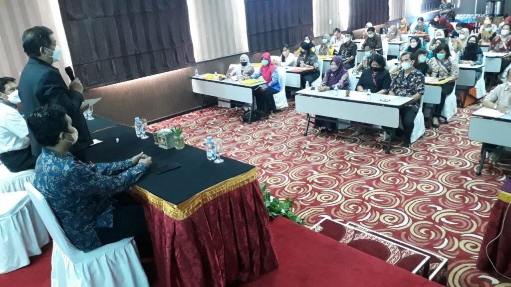 Pelatihan enumerator, supervisor dan pengolah data studi EHRA, penilaian resiko kesehatan lingkungan Kabupaten Kutim 2022 yang dibuka Kadinkes dr Bahrani, Kamis (9/6/2022) di Ruang Pelangi 2, Hotel Royal Victoria, Sangatta Utara. (foto Fuji dan Nasruddin Pro Kutim)