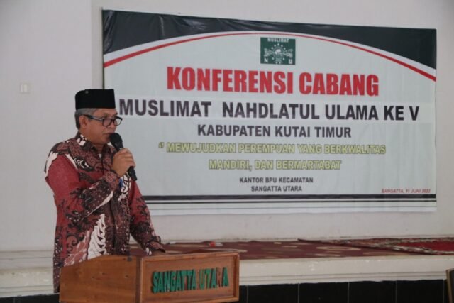 SANGATA- Muslimat NU (Nahdatul Ulama) merupakan organisasi perempuan di bawah naungan (NU) yang menjadi salah satu organisasi Islam tertua di Indonesia. Merupakan wadah bagi usaha peningkatan peran wanita Indonesia pada umumnya dan wanita Islam pada khususnya. Serta senantiasa berupaya mengembangkan pengetahuan, keterampilan dan potensi diri. Hal ini disampaikan Bupati Kutim H Ardiansyah Sulaiman dalam sambutan tertulis yang dibacakan Sekretaris Kabupaten (Seskab) Rizali Hadi pada acara Konfrensi Cabang Muslimat NU ke V, di Balai Pertemuan Umum(BPU), Kantor Camat Sangatta Utara, Sabtu(11/6/2022).