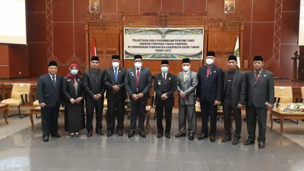 Pengambilan sumpah dan pelantikan jabatan JPT Pratama hasil seleksi terbuka tesrebut dipimpin langsung oleh Bupati Kutim H Ardiansyah Sulaiman di Ruang Meranti, Kantor Sekretariat Kabupaten Kutim, Selasa (21/6/2022). Mereka dilantik berdasarkan Surat Keputusan Bupati Kutim Nomor 821.2/263/BKPP -MUT/VI/2022 tentang Pengangkatan PNS dalam jabatan Pimpinan Tinggi Pratama, di lingkungan Pemkab Kutim 2022. Pelantikan turut dihadiri Wakil Bupati H Kasmidi Bulang, Ketua DPRD Kutim H Joni Sekertaris Kabupaten Rizali Hadi, unsur Forkopimda serta Kepala OPD dan undangan. Diterapkan terbatas dengan tetap menerapkan protokol kesehatan COVID-19.