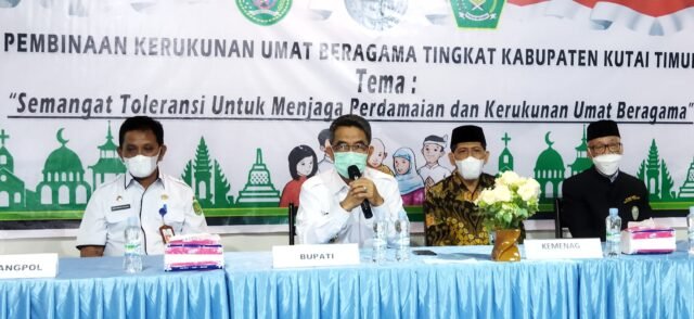 SANGATTA – Demi meningkatkan upaya kerukunan antar umat beragama di wilayah Kabupaten Kutai Timur (Kutim), Forum Kerukunan Umat Beragama (FKUB) Kutim menggelar pembinaan kerukunan umat beragama, tingkat Kabupaten Kutim, Rabu (10/8/2022) pagi. Kegiatan ini dikhususkan untuk umat beragama zona satu yakni Sangatta Utara, Sangatta Selatan, Teluk Pandan, Rantau Pulung dan Bengalon.