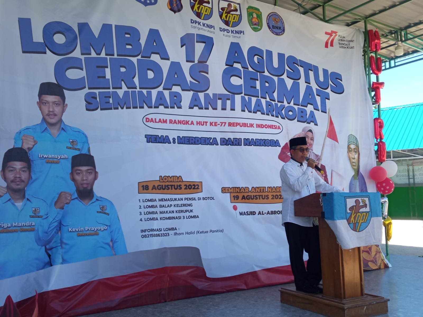 SANGATTA- Penyalahgunaan Narkoba (Narkotika, Psikotropika dan obat-obatan terlarang, red) di tengah-tengah masyarakat semakin marak. Tidak hanya di kota-kota besar tetapi juga hingga pelosok desa, termasuk di Kutai Timur (Kutim). Untuk itu KNPI bekerjasama dengan Badan Narkotika Nasional Kabupaten (BNNK) Kutim, Polres Kutim dan Ikatan Remaja Masjid Al Abror Sangatta Utara menggelar seminar anti narkoba pada Jumat (19/8/2022). Seminar dilaksanakan di Halaman Masjid Al-Abror Sangatta Utara.