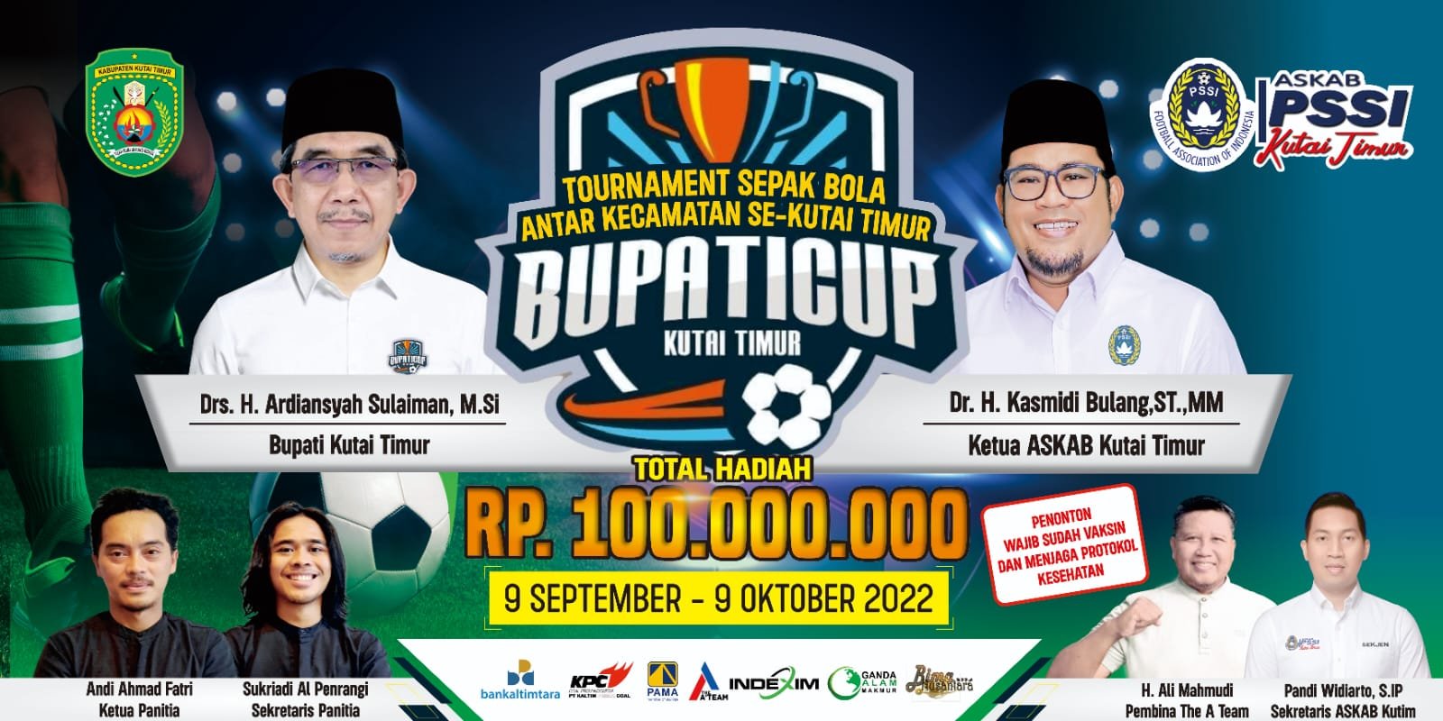 “Ayo masyarakat Kutim yang ingin menyaksikan seluruh laga sepak bola Bupati Cup 2022, silakan datang ke Stadion Kudungga Sangatta. Tapi ingat, penonton diwajibkan sudah pernah mendapat vaksin COVID-19,” tegasnya.