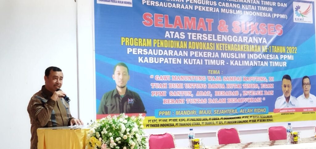 SANGATTA – Sebagai upaya meningkatkan pengetahuan karyawan peusahaan terkait regulasi dan aturan terkait perburuhan atau ketenagakerjaan, Persaudaraan pekerja muslim indonesia (PPMI) Kutai Timur (Kutim) menggelar pelatihan pelatihan advokasi ketenagakerjaan ke 1, Sabtu (17/9/2022). Kegiatan ini diikuti ratusan karyawan perusahaan yang terafiliasi dengan PPMI Kutim. Digelar di Cafe Teras Belad, Sangatta Utara, kegiatan ini dibuka Asisten Pemerintahan dan Kesejahteraan Rakyat (Pemkesra) Seskab Kutim Poniso Suryo Renggono mewakili Bupati yang berhalangan hadir.