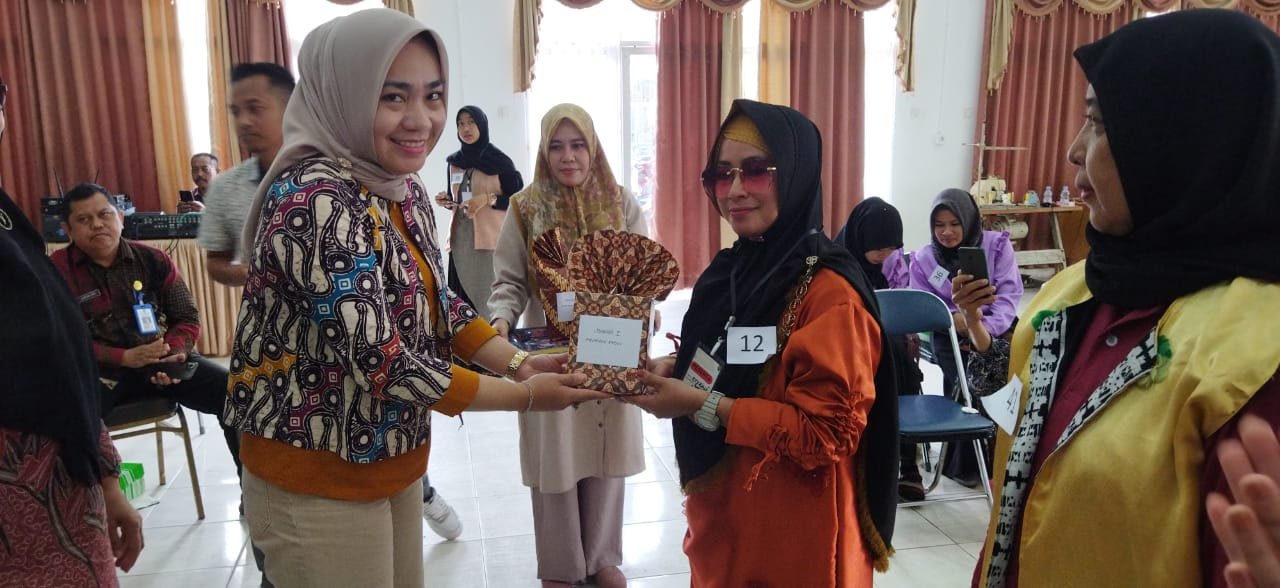 Momen penyerahaan hadiah oleh Wakil Ketua I DPRD Kutim Asti Mazar kepada peserta pelatihan. Foto: Wahyu Efendi Pro Kutim