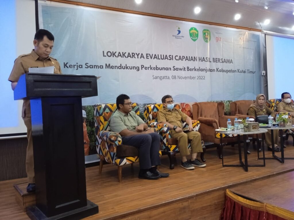 Lokakarya yang menjadi evaluasi hasil “Kerja Sama Mendukung Perkebunan Sawit Berkelanjutan Kabupaten Kutim” ini menghadirkan beberapa narasumber. Yaitu Puspita Suryaningtyas dari perwakilan Ditjen Pertanian dan Pangan Bappenas secara daring. Selain itu juga dihadirkan Asmirilda dari Dinas Perkebunan Provinsi Kalimantan Timur (Kaltim), Didik Prayinto Kepala Bidang Perlindungan Dinas Perkebunan Kutim Didik Prayinto dan Ripto Widargo dari Bappeda Kutim.