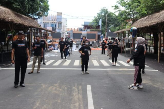 Penari Dispar Kutim melakukan sesi latihan di area catwalk BEC di sepanjang jalan protokol Kota Banyuwangi, mereka siap tampil totalitas membawa nama Kutim. Foto: Irfan/Pro Kutim