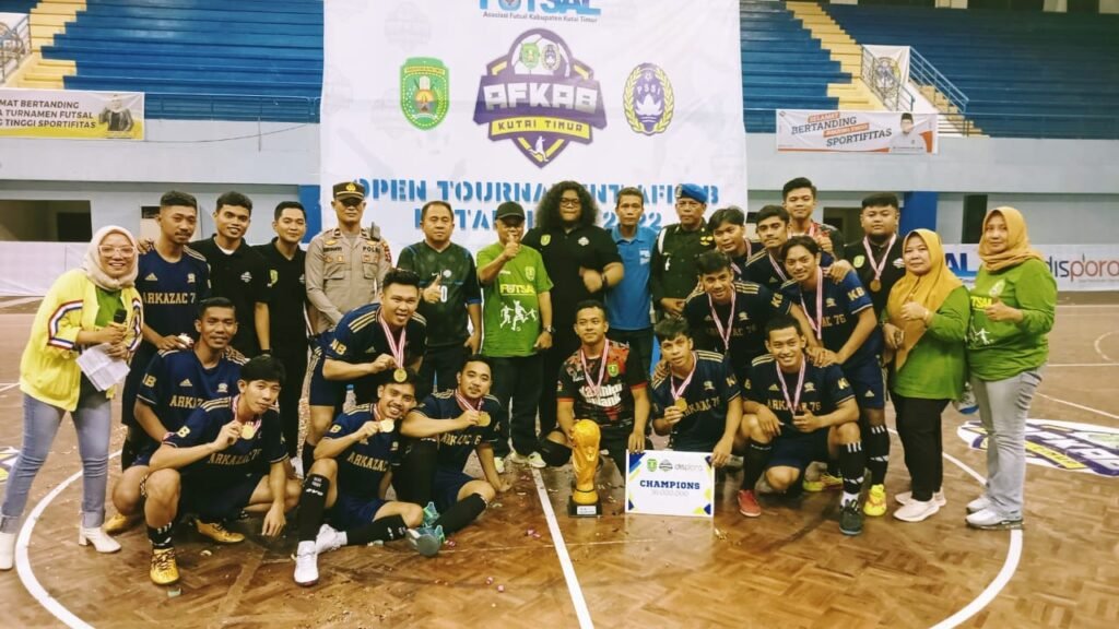 SANGATTA – Kejuaraan Futsal bertajuk Open Turnamen AFKAB Kutai Timur Tahun 2022 yang diselenggarakan Dinas Pemuda dan Olahraga (Dispora) Kutai Timur (Kutim) bekerja sama dengan Asosiasi Futsal Kabupaten (AFKAB) Kutai Timur (Kutim) resmi ditutup Wakil Bupati Kutim Kasmidi Bulang di GOR Kudungga Sangatta, Sabtu (10/12/2022) malam.