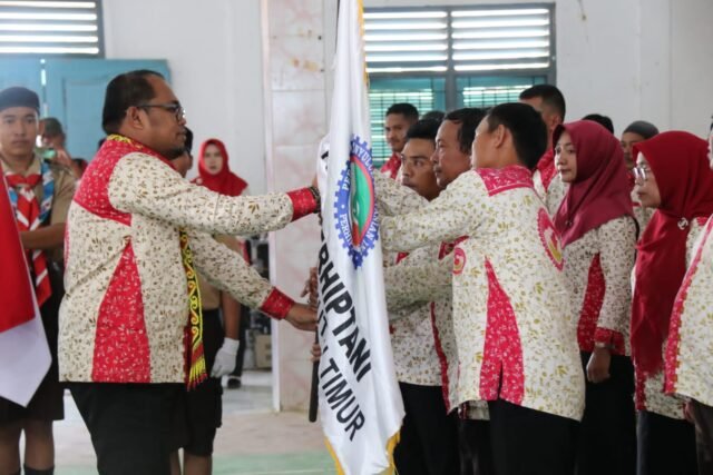 KONGBENG – Ketua Dewan Pimpinan Daerah Penyuluh Pertanian Indonesia (DPD Perhiptani) Kabupaten Kutai Timur (Kutim) Kasmidi Bulang mengukuhkan 72 Pengurus Dewan Pimpinan Cabang Penyuluh Pertanian Indonesia (DPC Perhiptani) Kecamatan Kongbeng, Muara Wahau dan Telen periode 2021-2026. Pengukuhan dilakukan berdasarkan Surat Keputusan DPD Perhiptani Kabupaten Kutim Nomor 19/22/26/SK/DPD-PERHIPTANI/II/2022. Prosesi pengukuhan berlangsung di Gedung Olahraga Desa Makmur Jaya, Kecamatan Kongbeng, Rabu (11/01/2023).