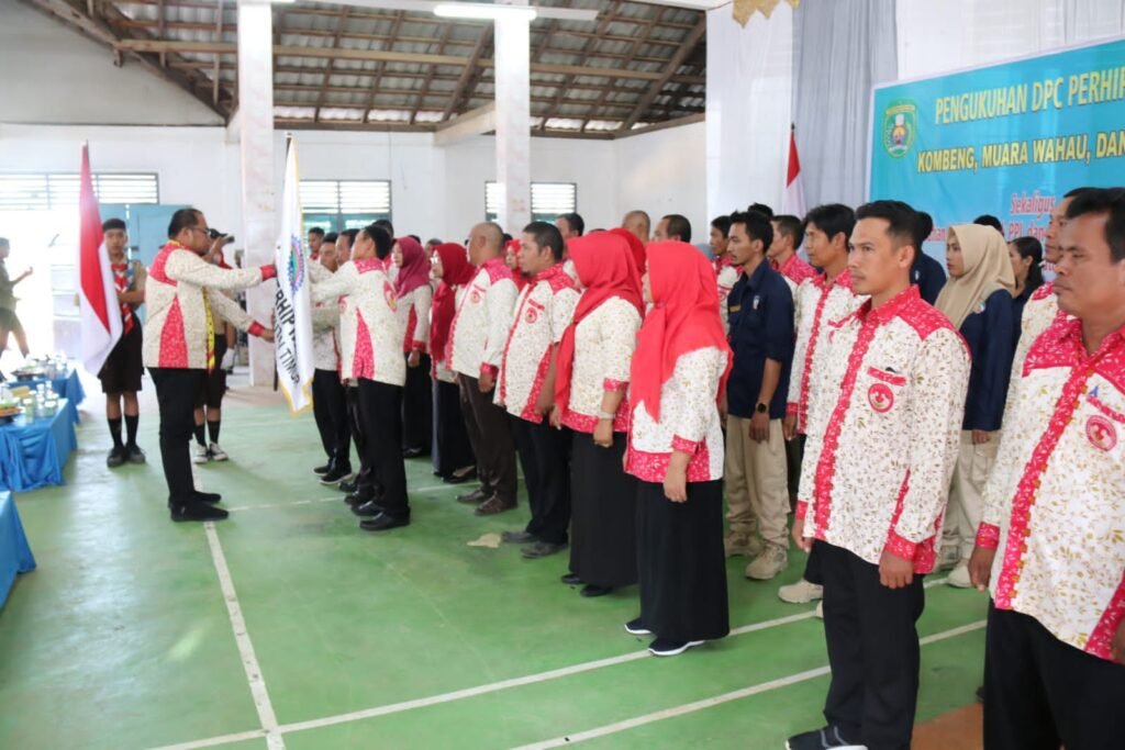 Ketua DPD Perhiptani Kutim Kasmidi Bulang saat mengukuhkan Pengurus DPC Perhiptani Kecamatan Kongbeng, Muara Wahau dan Telen. Foto : Nupiansyah Pro Kutim
